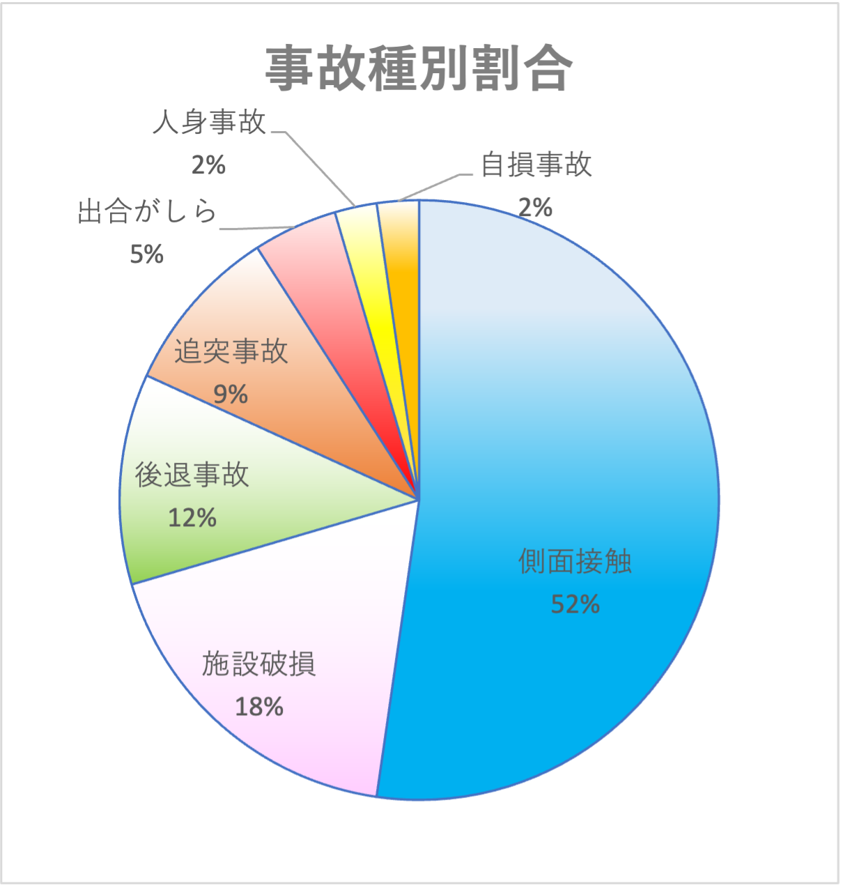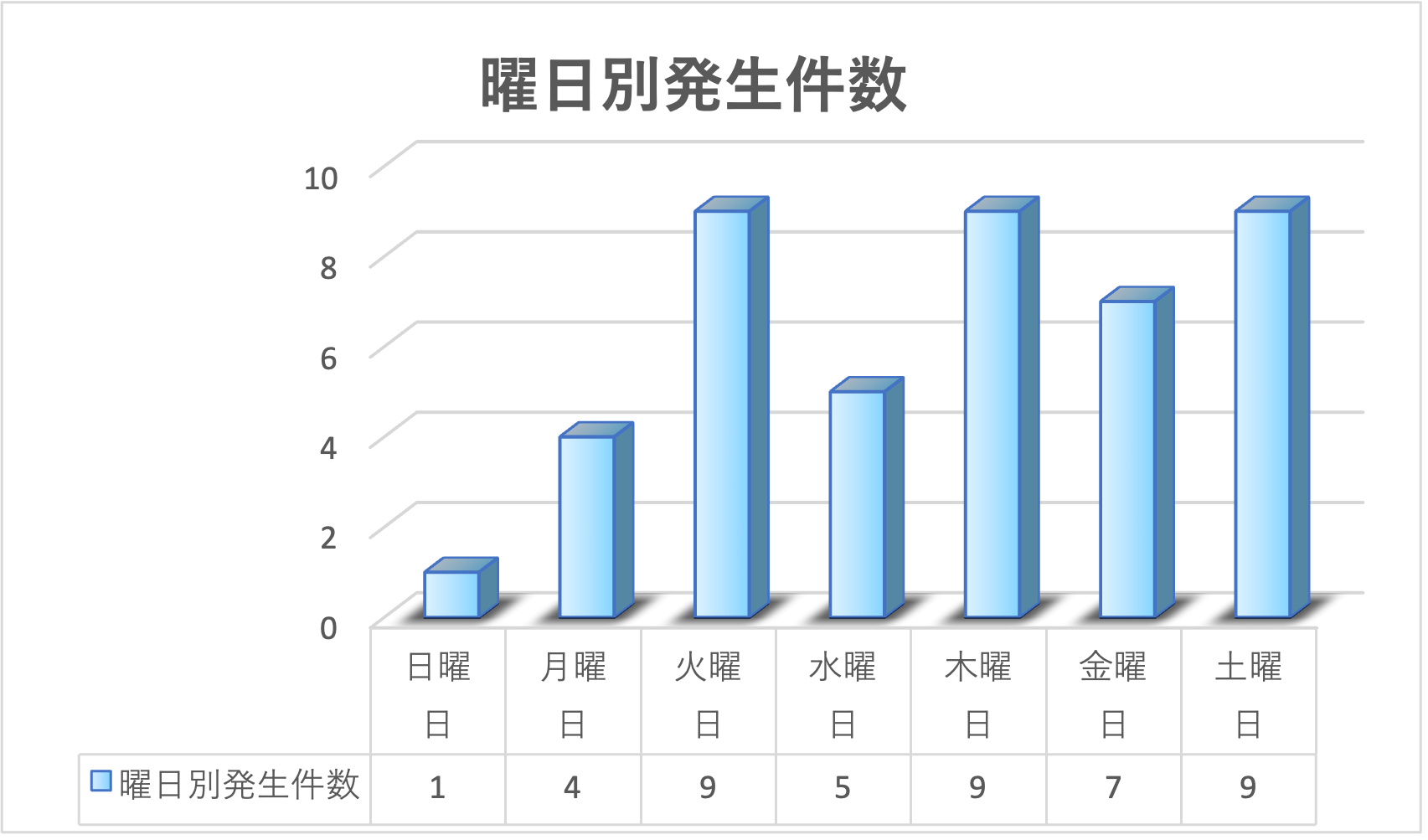 | 後退事故…5件 | 火曜日…9件 | 交差点…10件 | |