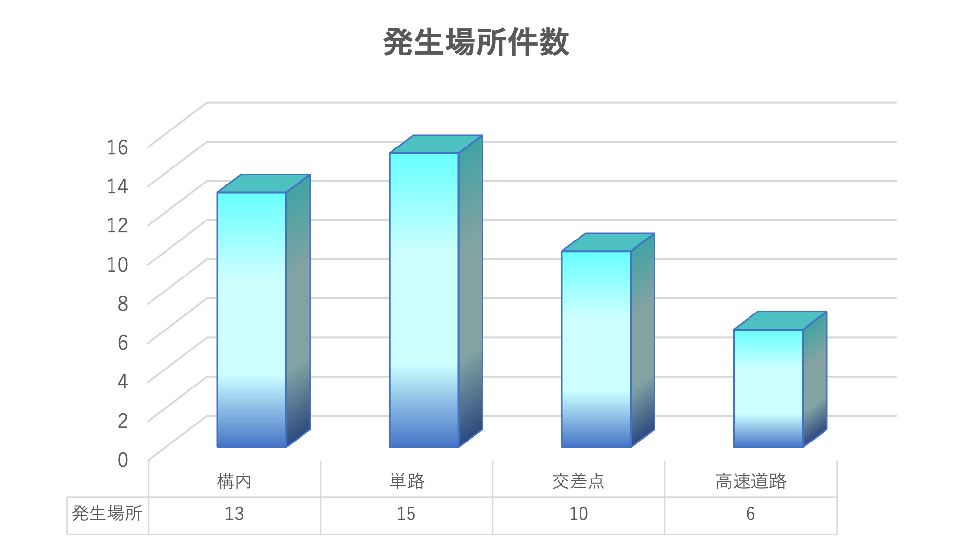 | 自損事故…1件 | 水曜日…5件 | 高速道路…6件 | |